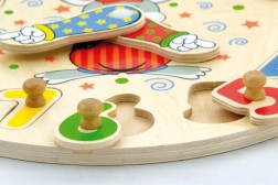 La robusta base in legno con bordi lisci è ideale per il gioco quotidiano a casa e all'asilo. Grazie al grande diametro di circa 30 cm, i numeri sono ben leggibili e lavorare con i pezzi è confortevole.