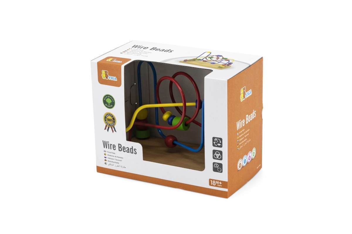 Divertente labirinto di perline in legno che favorisce la motricità fine, la coordinazione mano–occhio e il pensiero logico dei bambini dai 18 mesi. La solida base in legno e i binari colorati in filo metallico con perline garantiscono un gioco sicuro e duraturo.