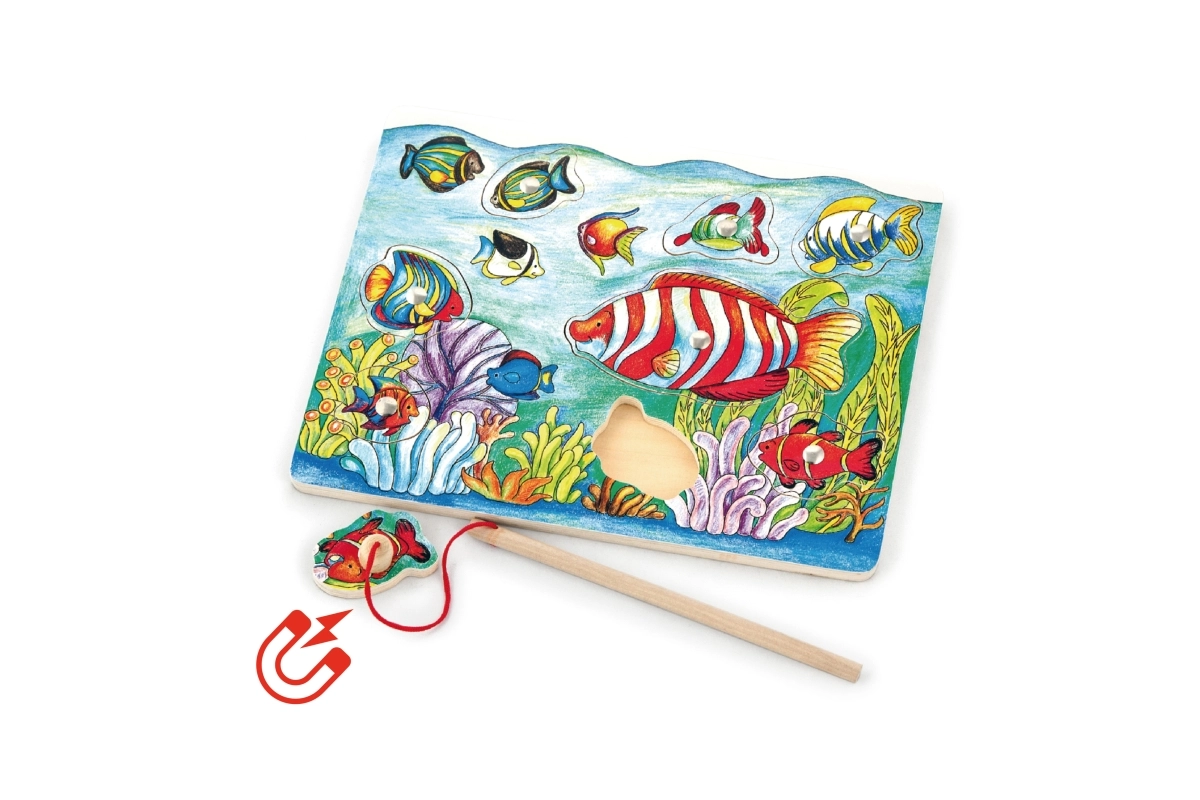 Questo gioco di pesca in legno porta ai bambini la gioia di catturare pesciolini colorati e al tempo stesso sviluppa le loro abilità. I pezzi si attaccano facilmente alla canna magnetica, aumentando il successo e la motivazione dei bambini. Ideale per giocare a casa o come regalo.