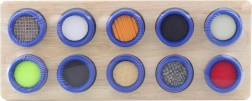 La tavola e i cilindri offrono dieci materiali differenti che favoriscono lo sviluppo della percezione tattile e delle abilità cognitive.