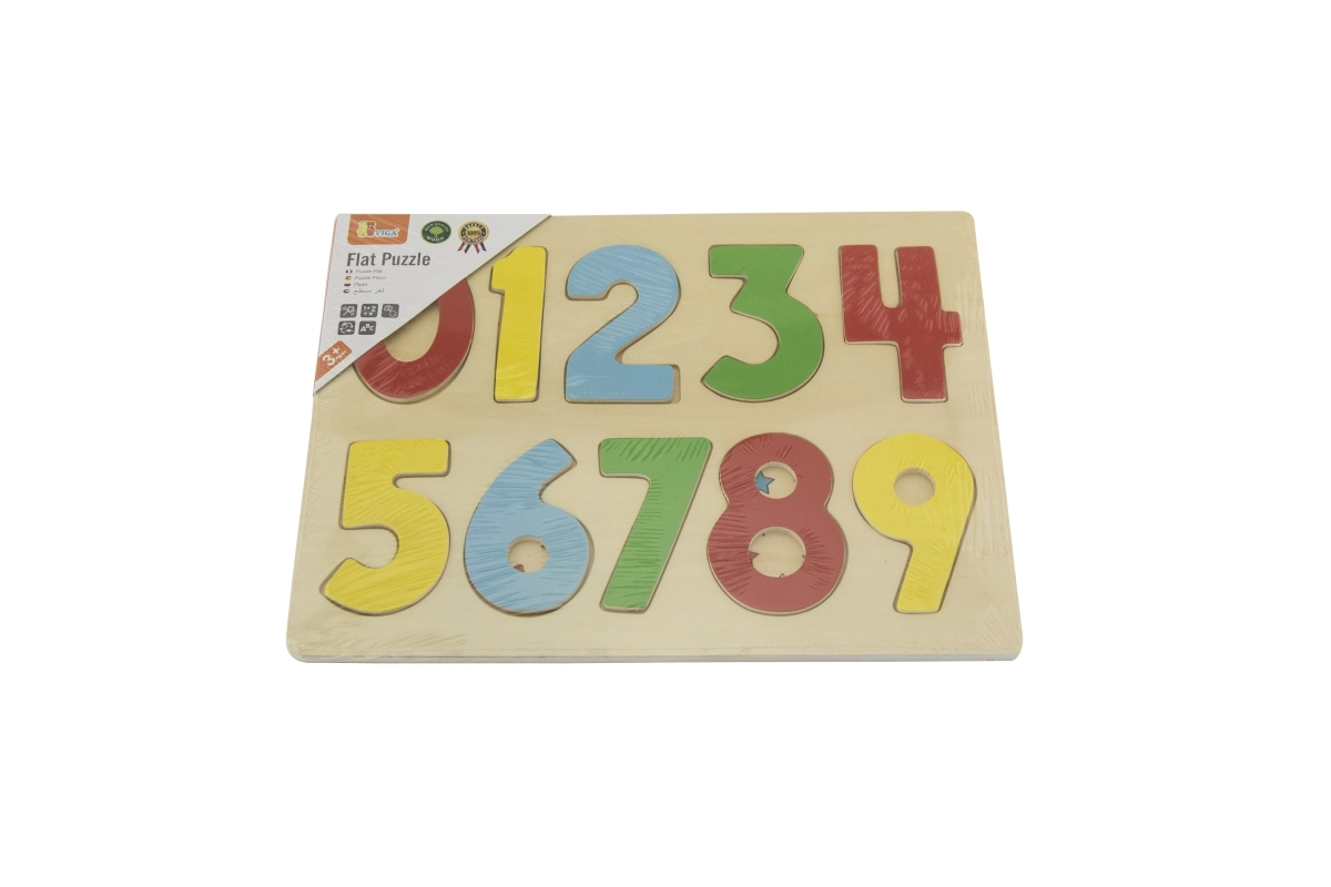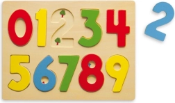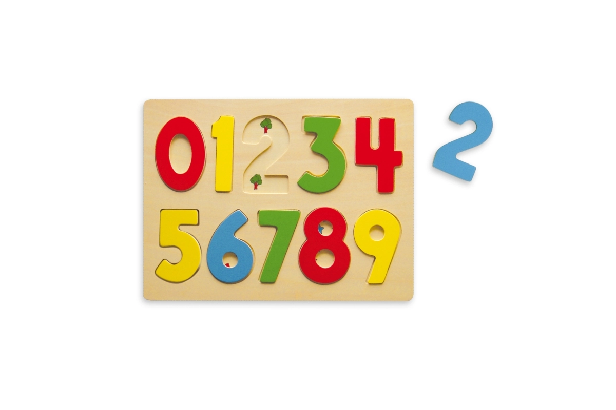 Questo puzzle numerico in legno offre dieci tasselli colorati separati con i numeri 0–9, da inserire negli incavi corrispondenti. I bambini imparano in modo naturale a riconoscere le cifre e allenano pazienza e concentrazione.