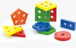 Il set include pezzi geometrici dai colori vivaci, che i bambini possono afferrare facilmente e ordinare per forma e colore.