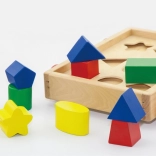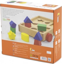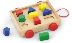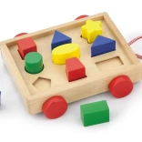 L'inserto in legno - carrellino offre ai bambini un modo divertente ed educativo per migliorare la motricità fine. Il set include un carrellino dalle dimensioni di 24,5 x 22 x 7 cm e 9 blocchi multicolore di forme diverse da inserire correttamente. Questo carrellino motiva i bambini al gioco mentre imparano il riconoscimento delle forme.