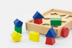 Il carrellino contiene diverse forme geometriche che permettono ai bambini di imparare in modo divertente a riconoscere le varie forme.
