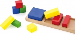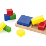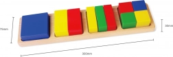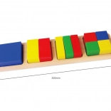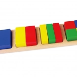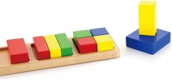 Grazie alla robusta struttura in legno, questo giocattolo offre durata nel tempo e sicurezza durante il gioco. I blocchi colorati si inseriscono facilmente nelle aperture predefinite sulla base in legno, insegnando ai bambini la percezione spaziale.