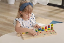 Con anelli colorati e tasselli numerati, i bambini possono sviluppare le loro competenze matematiche e il pensiero numerico.