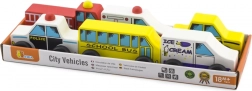 Il set offre diversi tipi di veicoli che aiutano i bambini a sviluppare creatività e comprensione dei servizi urbani.