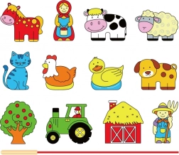 I blocchi rappresentano diverse forme di fattoria come animali, trattore, fienile e altri, stimolando il gioco creativo e la narrazione.