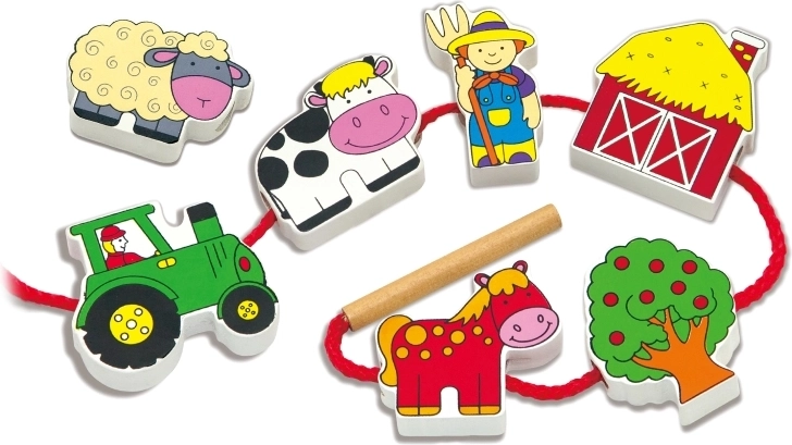 I Blocchi Fattoria in Legno da Intrecciare VIGA sono progettati per catturare l'attenzione di ogni bambino. Questo set contiene 12 blocchi colorati con motivi di fattoria che il tuo bambino può intrecciare insieme con il laccio incluso. Sono disponibili diverse forme come mucca, anatra, gatto, gallina, cane, cavallo, pecora, contadino e sua moglie, trattore, fienile e melo.