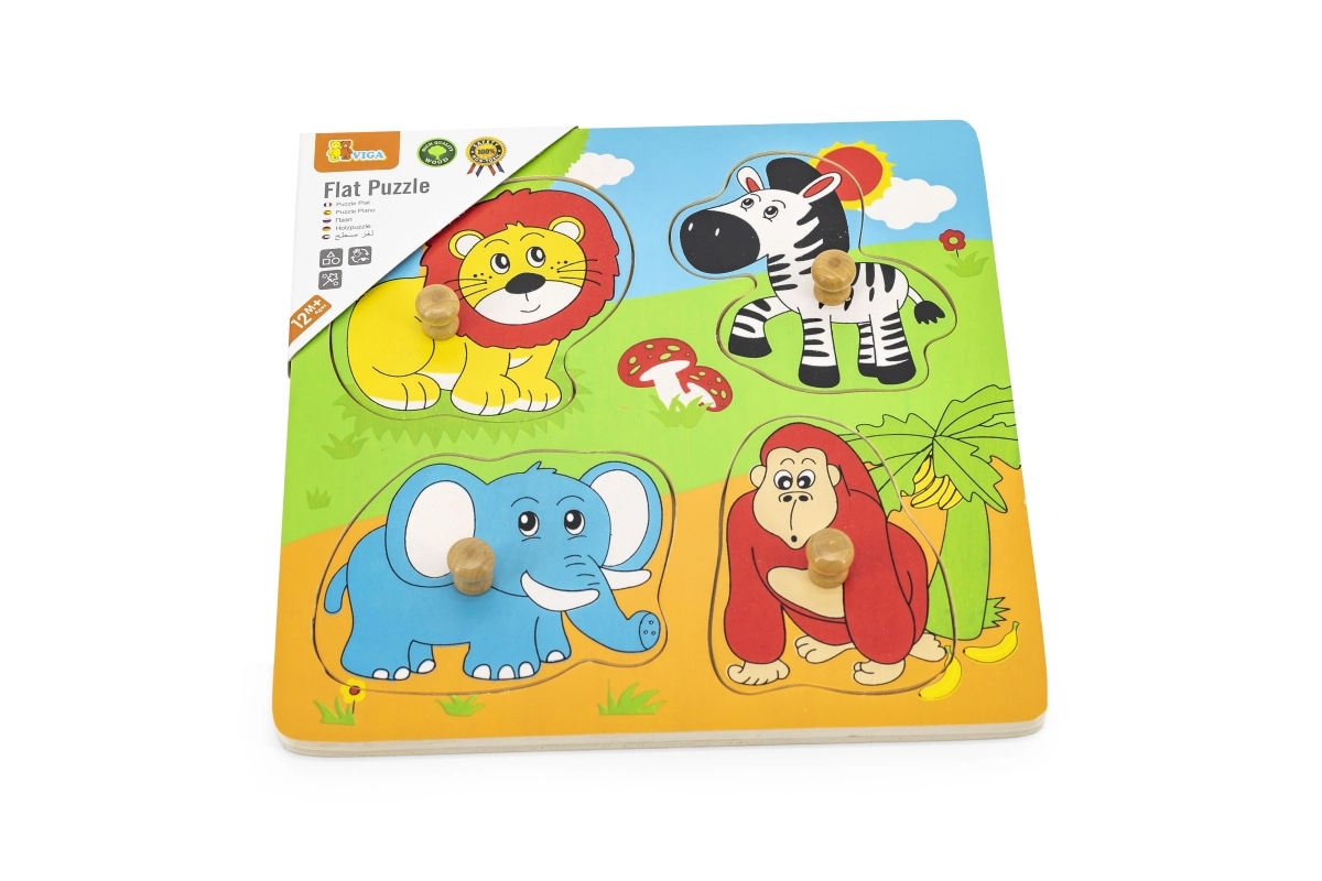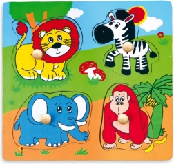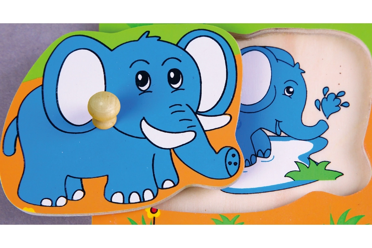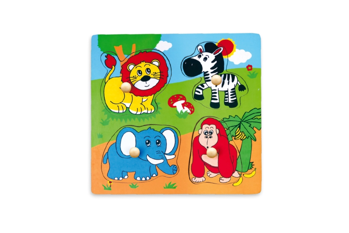 Puzzle in legno safari con animali con pomelli 22 × 22 cm