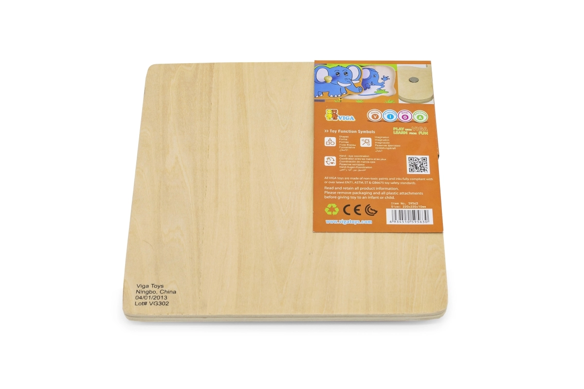 Questo inserto in legno di alta qualità con tema safari è il primo puzzle ideale per i più piccoli. Ogni pezzo ha un pomello in legno per una presa facile dalle manine e una silhouette corrispondente sulla base per orientarsi più facilmente.