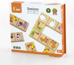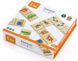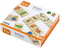 Il domino è realizzato in legno di qualità, il che garantisce la sua durabilità e sicurezza durante il gioco. Ogni pezzo ha dimensioni di circa 7 x 3,5 x 0,5 cm, ideale per le piccole mani dei bambini.