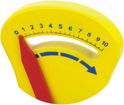 Premendo il piattino di pesatura la lancetta si muove e indica i numeri 0–10. I bambini vedono subito il «risultato della pesata» e imparano la relazione tra la pressione e il valore.