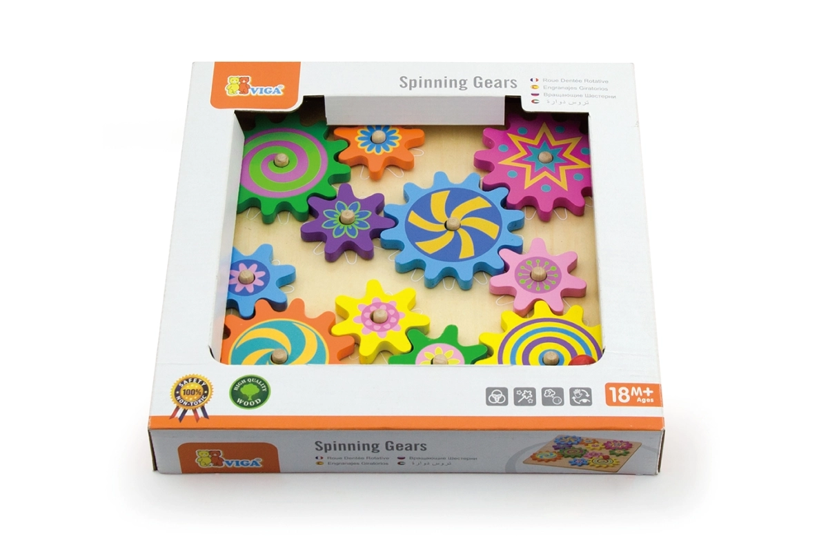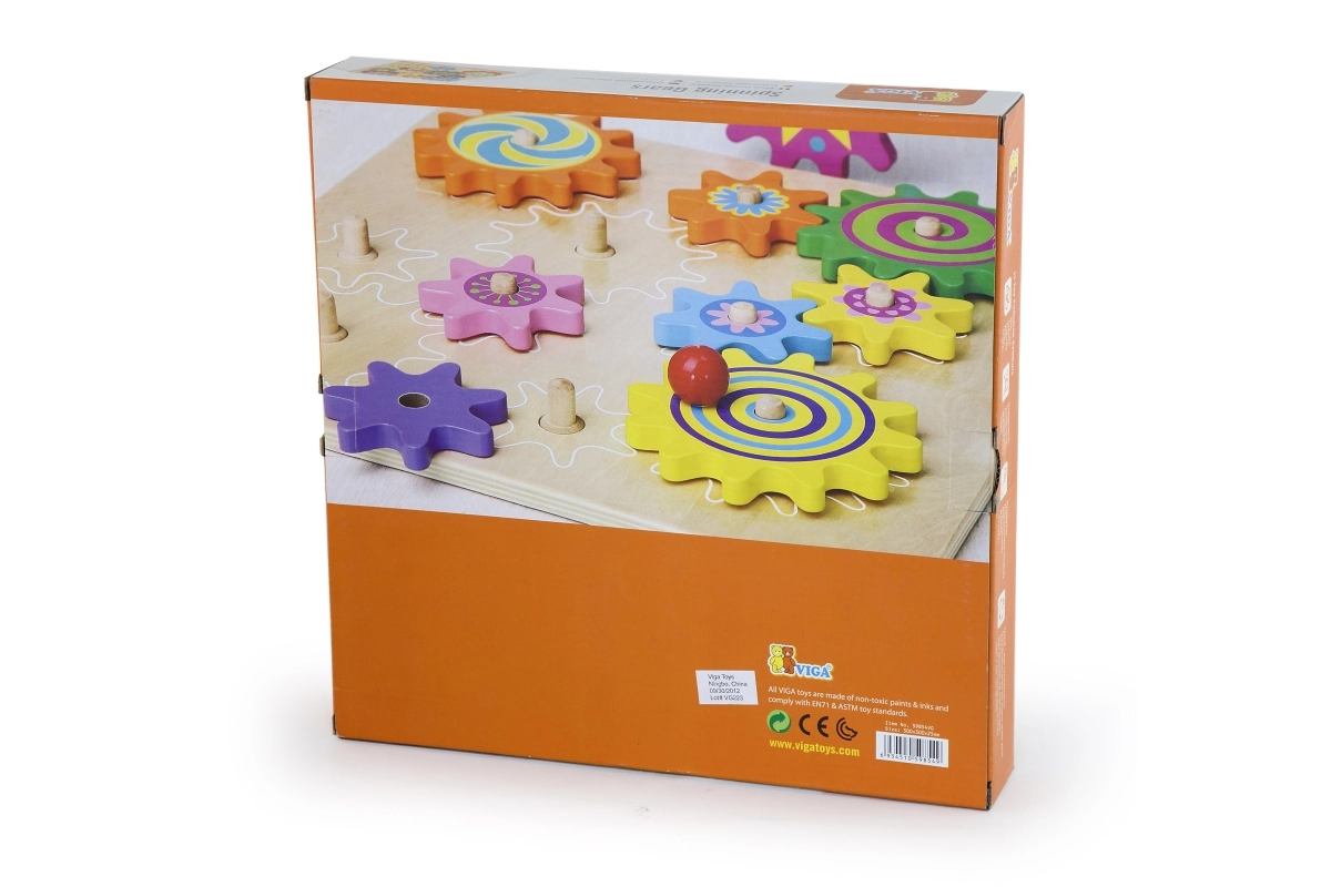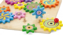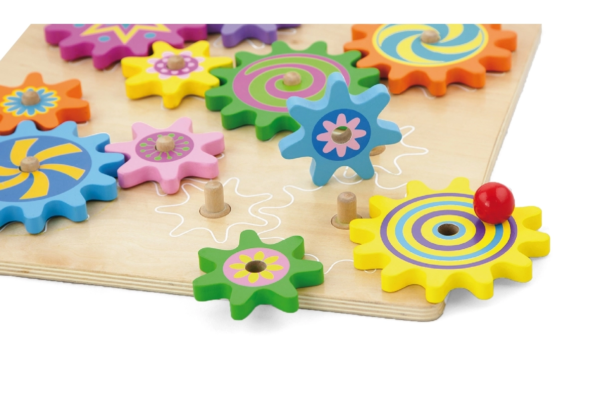 Pannello in legno di qualità e ingranaggi massicci con bordi lisci, progettati per il gioco quotidiano dei più piccoli.