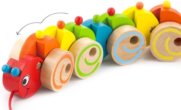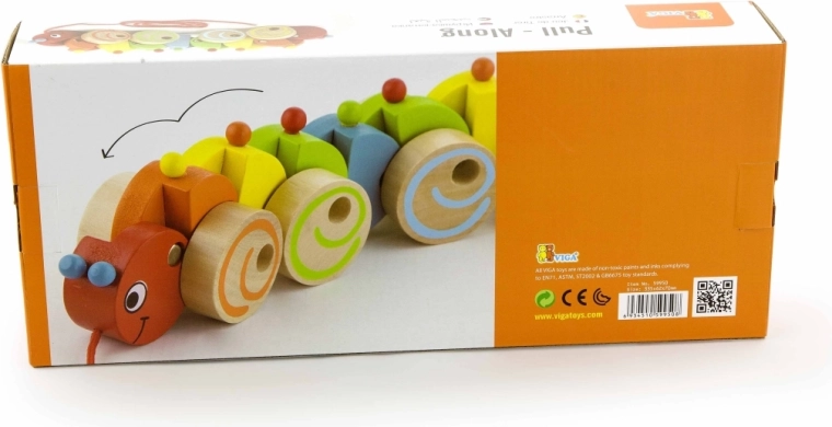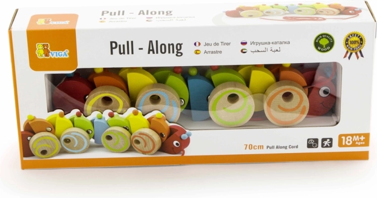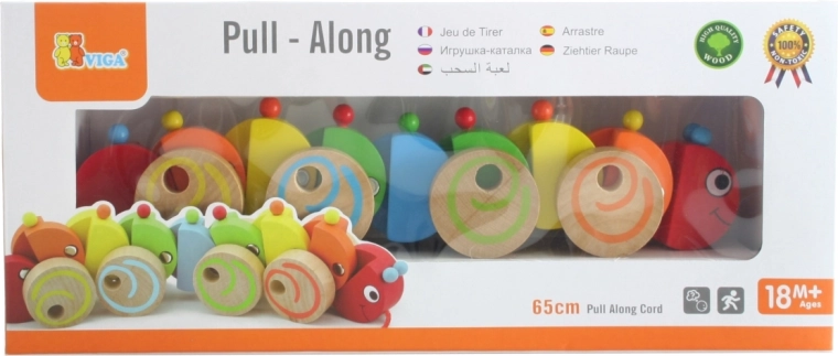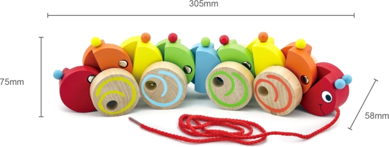 Questo allegro bruco di legno è il giocattolo ideale per i bambini piccoli. I segmenti multicolori durante il movimento si muovono e ruotano, incentivando i bambini alla camminata e al gioco attivo. La struttura robusta e i bordi arrotondati garantiscono un utilizzo sicuro nelle mani dei bambini.