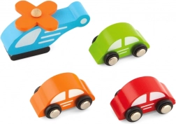 La confezione comprende 3 macchinine in legno e un elicottero, così si può iniziare a giocare subito dopo l’apertura. Le forme arrotondate e i materiali resistenti sono ideali per il gioco quotidiano.