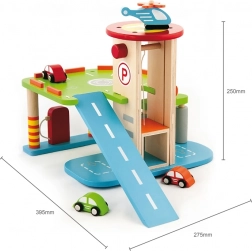 Questo garage in legno di alta qualità offre più livelli di parcheggio, una piattaforma di atterraggio per l’elicottero e un pratico ascensore per spostare facilmente le macchinine tra i piani. Grazie al design studiato con piste, segnaletica e accessori, i bambini allenano la coordinazione dei movimenti e sviluppano la loro immaginazione.