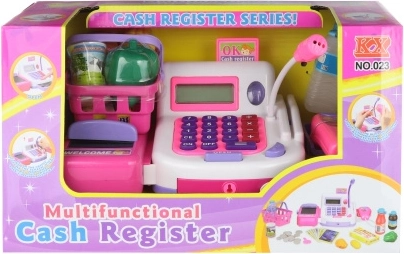Divertente cassa registratrice per bambini con nastro trasportatore funzionante e lettore, perfetta per ogni piccolo negoziante. Include un cestino della spesa, monetine e funzioni realistiche alimentate da 2× batterie AA. Giocattolo ideale per sviluppare la fantasia e per giocare al negozio dai 3 anni in su.