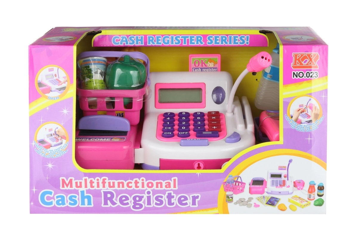 La cassa è dotata di nastro trasportatore, lettore e cassetto per le monetine. I bambini possono così esercitare i calcoli di base, la comunicazione e le abilità sociali. L’alimentazione è garantita da 2× batterie AA (non incluse).