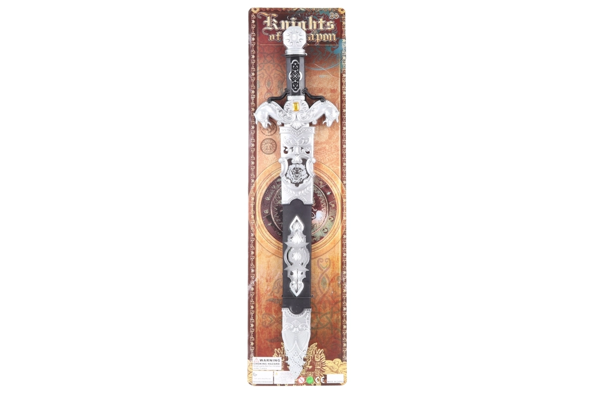 Spada di plastica con fodero, lunghezza circa 53 cm. Dimensioni della confezione circa 57,5 x 15 cm. Età 3+