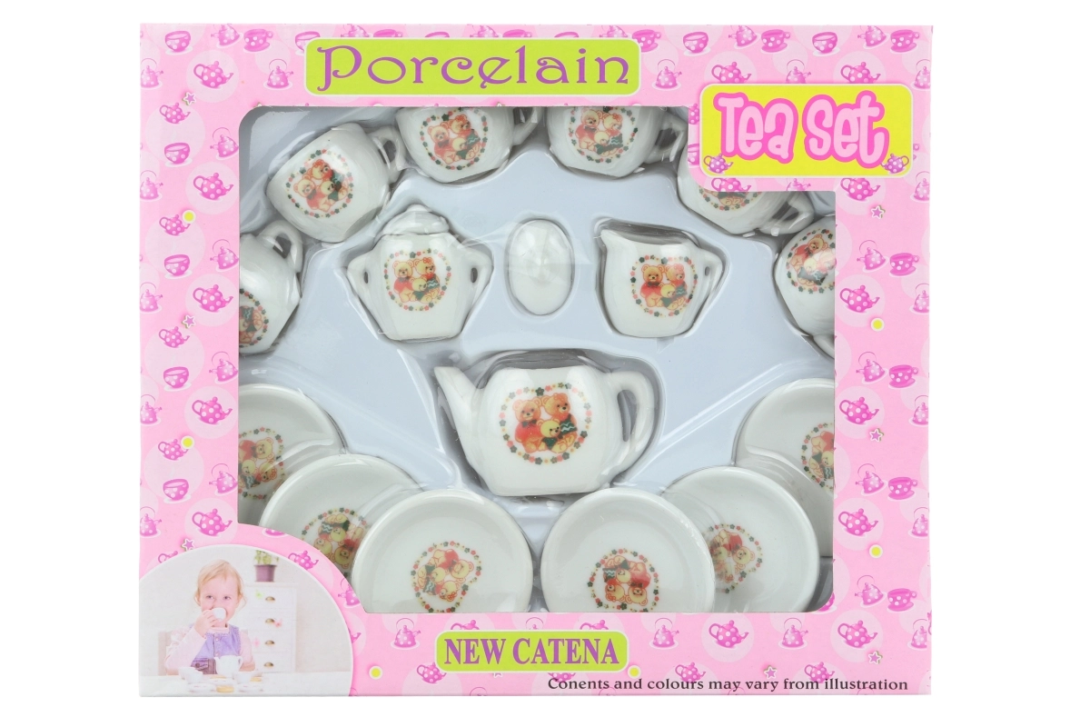 Adorabile set da tè in porcellana con motivo di orsetti che farà felici tutti i piccoli padroncini e padroncine di casa. Include una teiera, tazzine con piattini e altri accessori per un perfetto tè delle cinque. La confezione compatta da 24,5 × 20,5 × 4,5 cm è ideale in viaggio e per riporre tutto dopo il gioco. Adatto ai bambini dai 3 anni.