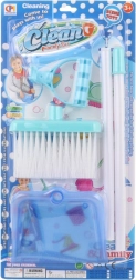 Set di pulizia in plastica per bambini che include una scopetta e una paletta con lungo manico. Un ottimo giocattolo per i piccoli aiutanti.