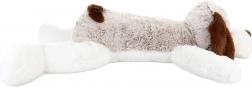 Grazie alla forma piatta tipo cuscino è perfetto per riposare, leggere e addormentarsi. La colorazione neutra con orecchie marroni e zampine bianche si integra meravigliosamente in ogni ambiente. Il peluche è leggerissimo, morbidissimo e coccoloso, così i bambini se ne innamoreranno subito.
