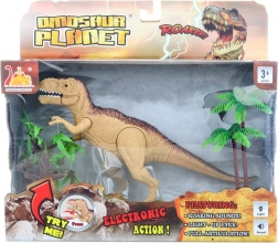 Risveglia il divertimento preistorico con questo realistico T‑Rex a batterie. Premendo la zampa anteriore inizia a ruggire e si illuminano gli occhi. Nella confezione sono inclusi 2 alberelli in plastica per una scena di gioco ancora più coinvolgente. Idea regalo ideale per bambini dai 3 anni in su.