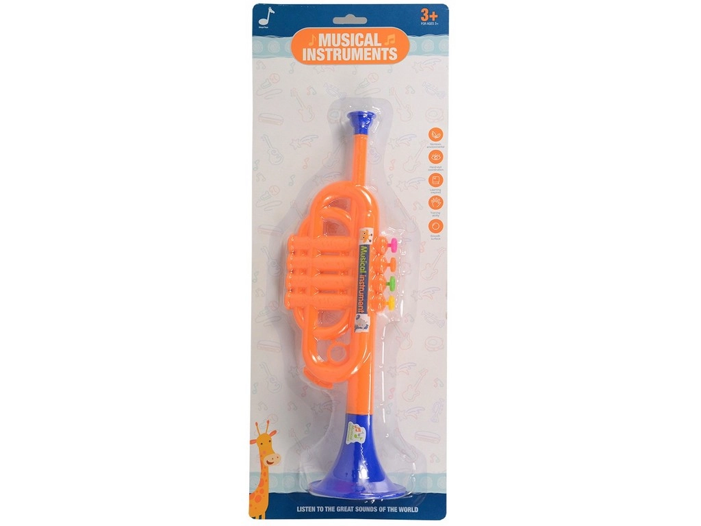 Semplice tromba per bambini lunga 35 cm che farà felici i piccoli musicisti. Offre struttura in plastica resistente, facile da usare e effetto sonoro con una sola nota – ideale per i primi esperimenti musicali dai 3 anni.