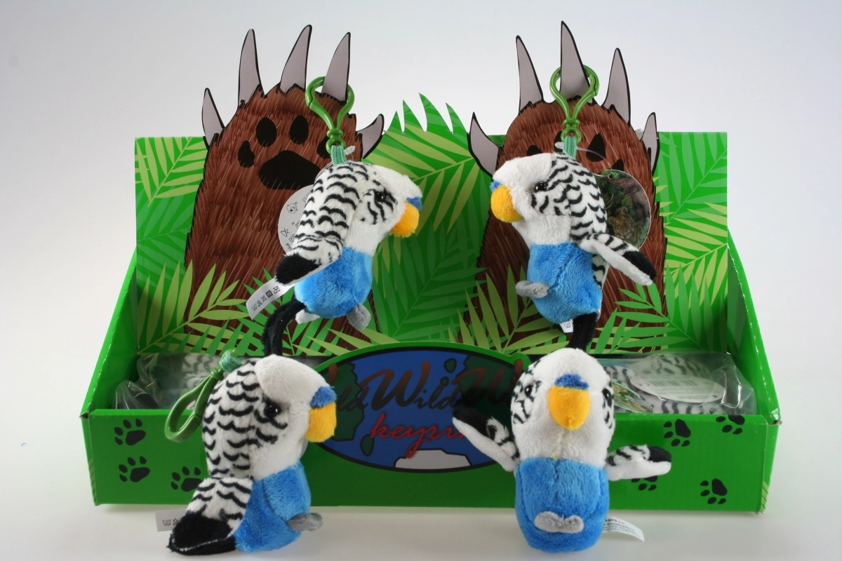 Adorabile cocorita di peluche di colore bianco in versione portachiavi, ideale per chiavi, zaino o borsa. Morbidissimo materiale, dimensioni compatte di circa 9 cm e aggancio sicuro: un regalo perfetto per bambini e amanti degli uccellini.
