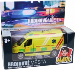 Divertente e resistente macchinina di soccorso della serie Eroi della città che farà felice ogni piccolo pilota. Offre effetti luminosi e sonori, meccanismo a retrocarica per corse veloci ed è disponibile in 3 varianti: ambulanza, polizia e vigili del fuoco.