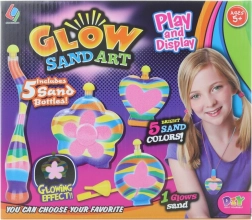 - 4 boccette di plastica, 56 bustine di sabbia luminosa colorata, imbuto in plastica, coltellino in plastica
