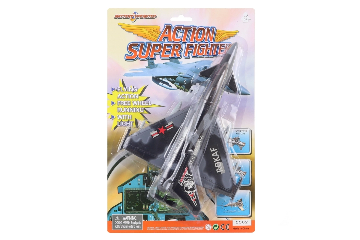 Divertente aereo da caccia in plastica per bambini dai 5 anni che porta tanta azione in casa e in giardino. Una volta appeso alla corda inclusa, si gira automaticamente in tondo, si illumina e fa ruotare l’elica per un effetto di volo realistico. Alimentazione con 2× batterie AA (non incluse). Dimensioni compatte del giocattolo circa 28 × 21 cm.