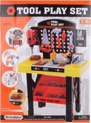 Grande banco da lavoro in plastica per piccoli fai‑da‑te con dotazione ricca e funzioni realistiche. Include trapano da banco, morsa, pialletto, sega, martello, chiavi e altri accessori. Ideale per sviluppare la motricità fine, il gioco creativo e un approccio sicuro agli attrezzi.