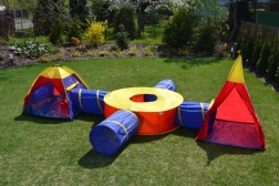 Combina iglù, tipi, centro circolare e 4 tunnel in qualsiasi configurazione. Ogni elemento può essere usato anche singolarmente: ideale per appartamento e giardino.