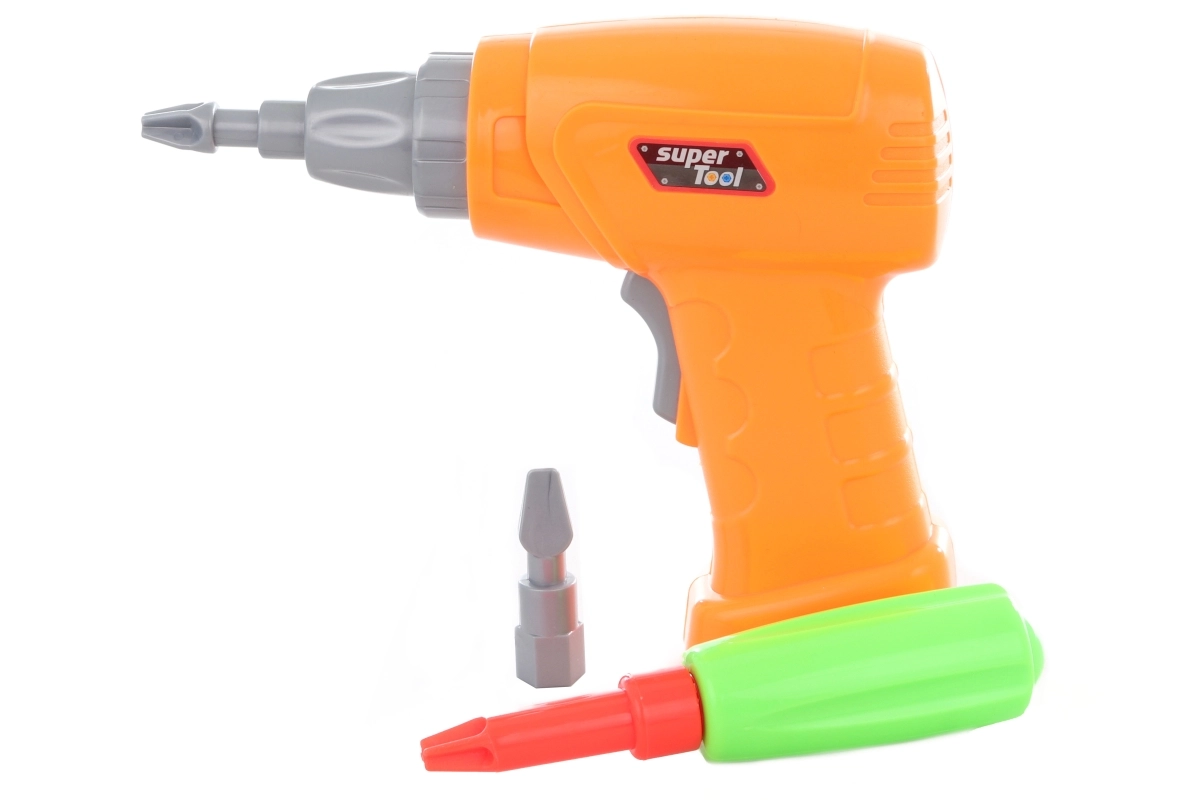 - Trapano per bambini con due punte e cacciavite per un gioco realistico da artigiano