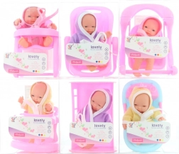 Scopri la magia della cura del bebè con una graziosa bambola e accessori a tema. Ogni set include dotazioni diverse – dalla seggiolina alla vasca e al lettino fino al girello – e un outfit coordinato. Grazie alla dimensione di circa 10 cm, la bambola è leggera, facile da trasportare e perfetta per la mano dei più piccoli.