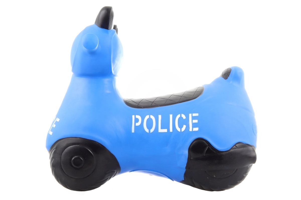 Divertente cavalcabile gonfiabile in gomma a forma di moto con motivo della polizia per bambini da 1 anno. Favorisce lo sviluppo dell’equilibrio, della motricità grossa e della coordinazione; è stabile, resistente e facile da pulire. Nella confezione è inclusa una pompetta per un gonfiaggio rapido.