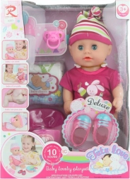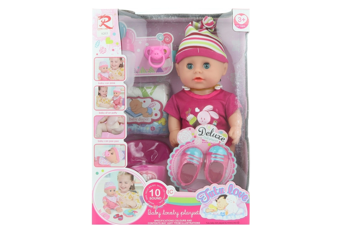 Dolcissimo bambolotto di 30 cm che, una volta inserite le batterie, emette suoni realistici e sa anche fare la pipì. Nella confezione trovi una ricca dotazione di accessori, tra cui scarpette, bavaglino in plastica, biberon e piattino. Le batterie sono incluse, così i bambini possono giocare subito dopo l’apertura.