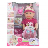 Nella confezione è incluso tutto ciò che i piccoli caregiver necessitano: dalle scarpette e dal bavaglino al biberon e al piattino. La bambola ha dimensioni compatte 30 × 12 cm ed è comoda da tenere nelle mani dei bambini. Con le batterie AG13 incluse è pronta per giocare immediatamente.