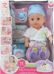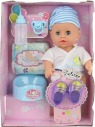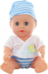 Un dolce bambolotto alto 30 cm farà felice ogni piccolo caregiver. Dopo aver inserito le batterie emette suoni realistici e sa fare la pipì. La confezione include scarpette, bavaglino, biberon, piattino e altri accessori per giocare a fare la mamma o il papà. Ideale per bambini dai 3 anni in su.