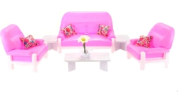 Glorie Soggiorno include un divano in plastica per bambole con dimensioni circa 22 cm x 11 cm x 13 cm, 2 poltrone in plastica con dimensioni circa 13,5 cm x 11 cm x 13 cm, un tavolino in plastica circa 7,5 cm x 15 cm x 5 cm con un accessorio per il tavolino - un cigno in plastica con fiori, 2 sgabelli in plastica circa 7,5 cm x 4 cm. Come accessori sono inclusi 4 cuscinetti. La bambola e l’omino non sono inclusi nella confezione. Età 3+.