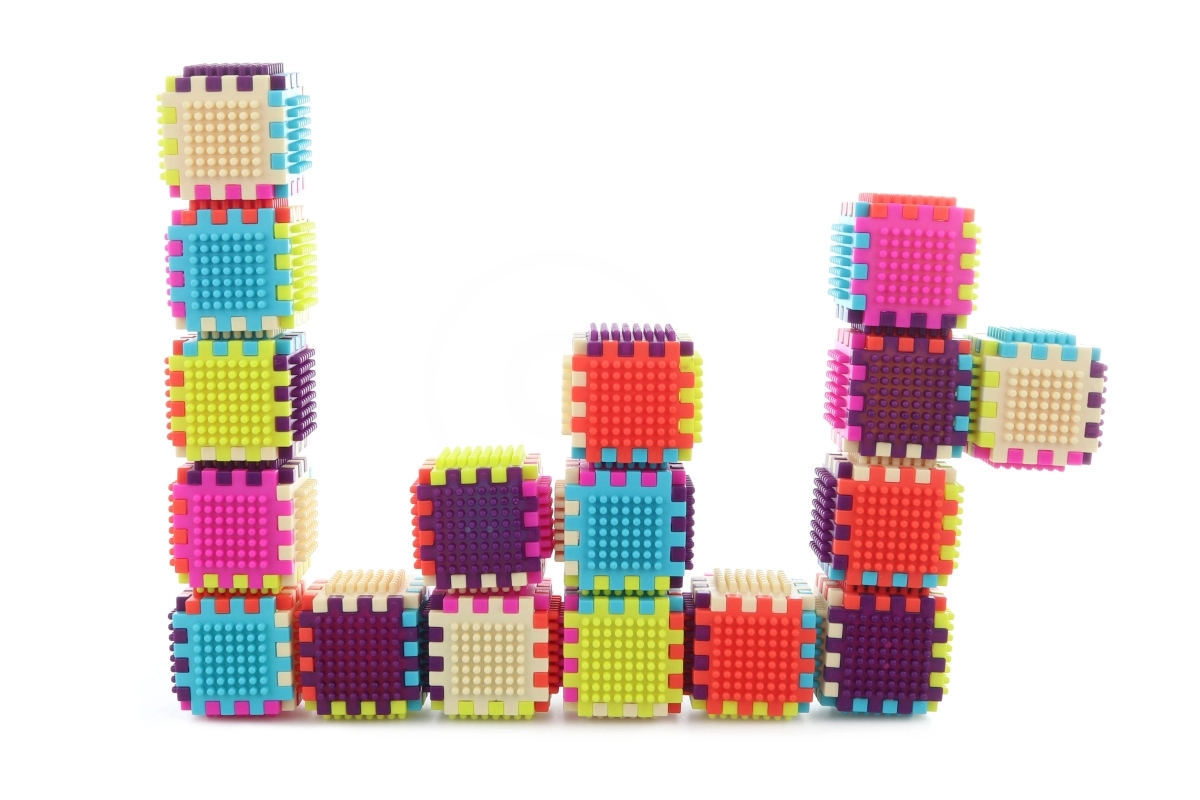 I colori vivaci e i blocchi facilmente collegabili ispirano i bambini a creare torri, casette e oggetti di fantasia.