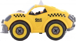 Costruisci, avvita e parti! Questo set creativo unisce un modello avvitabile di taxi giallo con la possibilità di trasformarlo in un’auto radiocomandata. I bambini prima assemblano l’auto con il cacciavite o il trapano, poi estraggono il motorino dal trapano, lo inseriscono nell’auto e si godono il semplice controllo avanti e indietro.