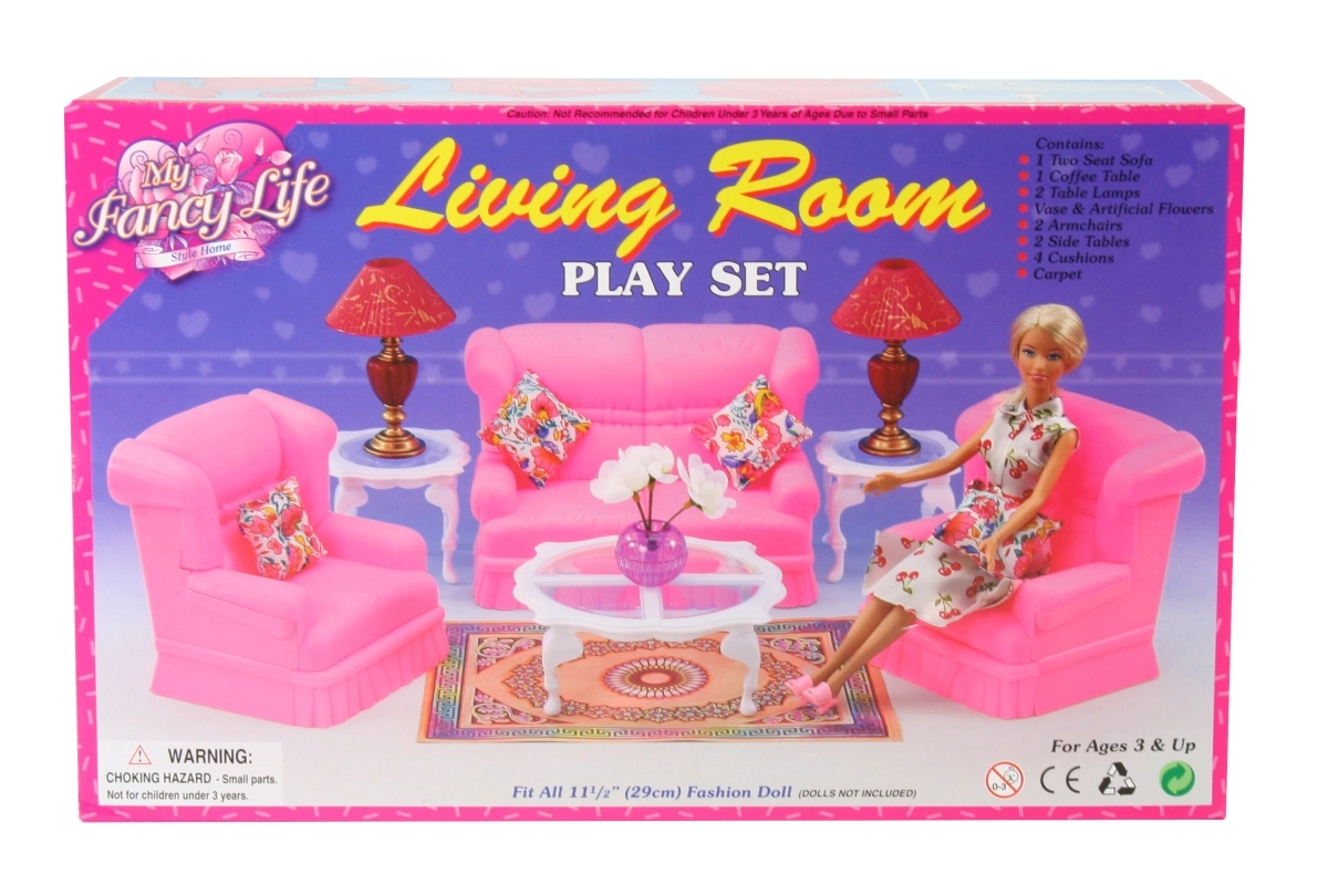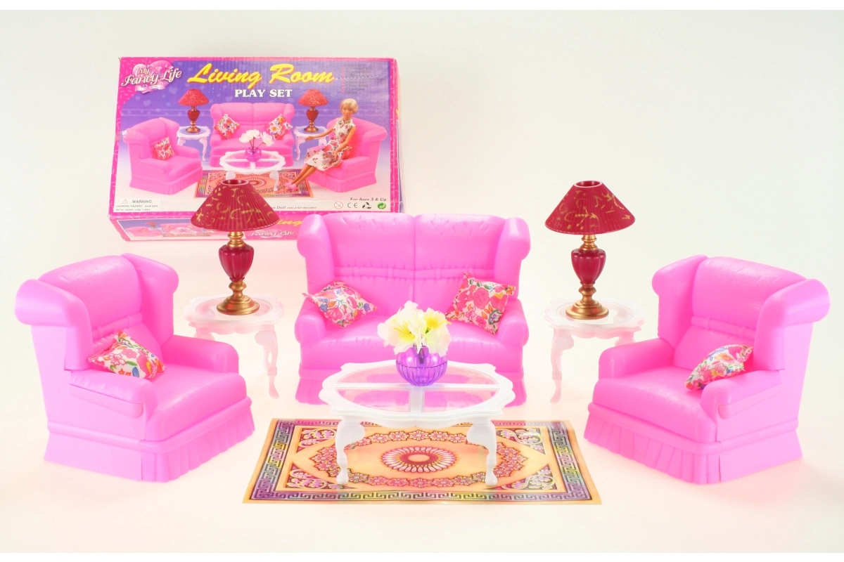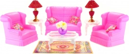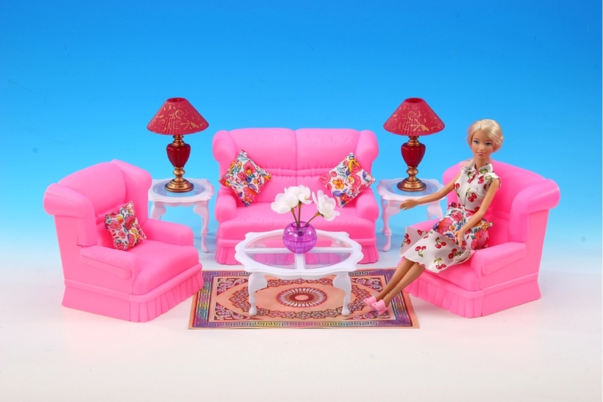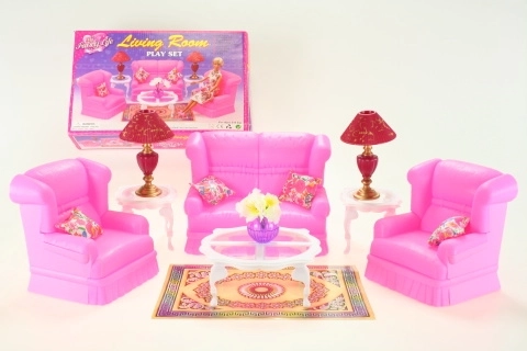 Il set soggiorno per bambole GLORIE, dal design elegante, trasforma ogni casetta in una casa accogliente. Include divano, due poltrone, tavolino da caffè e tavolino d’appoggio, lampade e decorazioni. Ideale per il gioco creativo e lo sviluppo della fantasia. Arredo completo del soggiorno, accessori curati nei dettagli e materiale plastico resistente che conquisteranno i bambini dai 3 anni.
