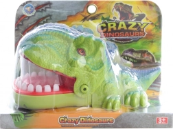Divertitevi con il gioco Denti del dinosauro! Il dinosauro apre la bocca e i giocatori premono a turno i suoi denti – in un momento inaspettato la bocca si richiude. Avvincente divertimento di riflessi per piccoli e grandi, dove rapidità di reazione e fortuna decidono il vincitore.