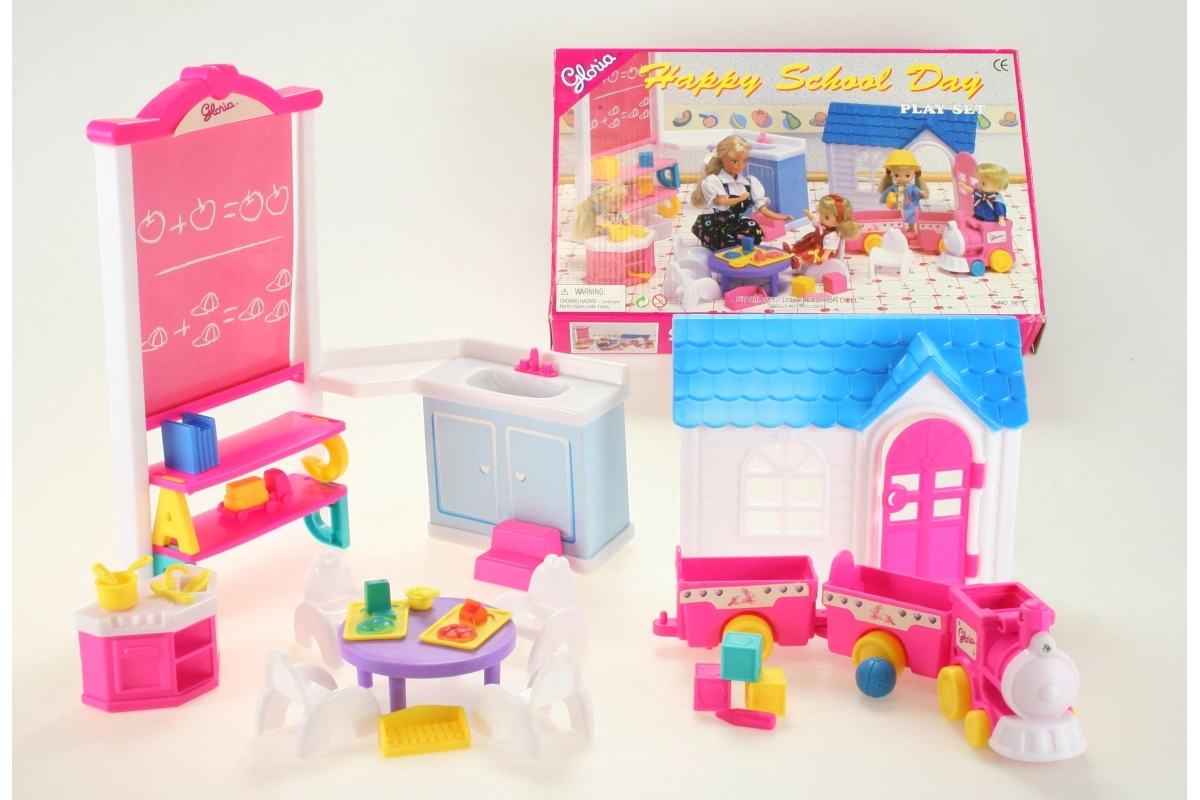 Crea per le bambole un ambiente perfetto con il ricco set Glorie asilo. I bambini adoreranno giocare all’asilo con elementi realistici, come la lavagna con scaffali, il lavandino funzionale e la casetta con sportellini apribili. Inclusi anche il trenino, il tavolino, le seggioline e numerosi piccoli accessori, giocattoli e stoviglie – tutto per scenari creativi e il piacere del gioco quotidiano.