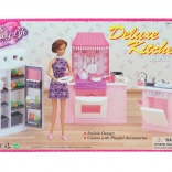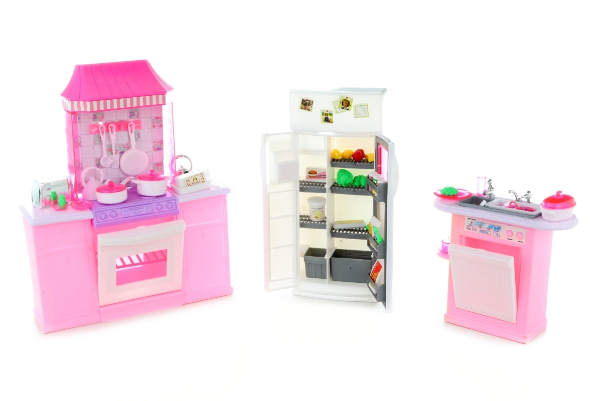 Offri ai bambini un gioco domestico realistico con il set cucina di lusso GLORIE, che include una completa cucina con forno, lavello con lavastoviglie e frigorifero con alimenti. Il set comprende anche ricchi accessori di stoviglie. La bambola non è inclusa. Adatto ai bambini da 3 anni.