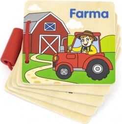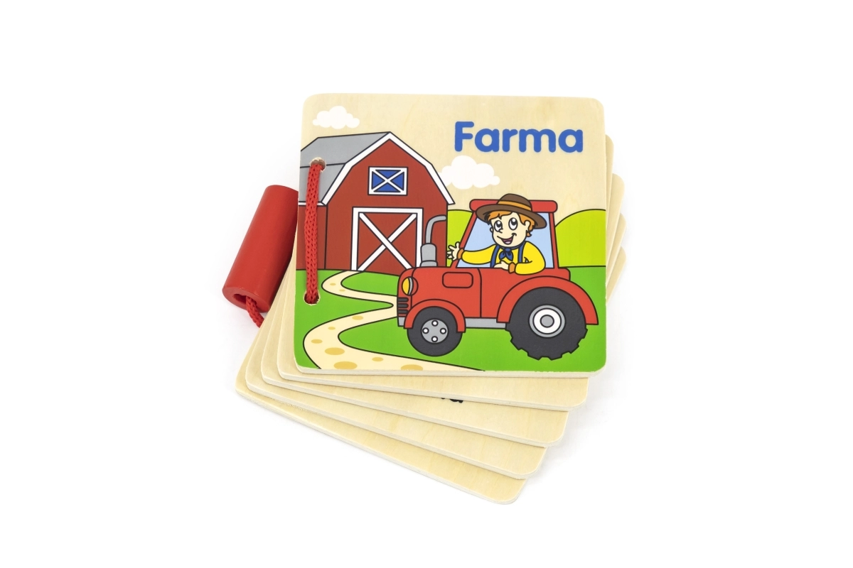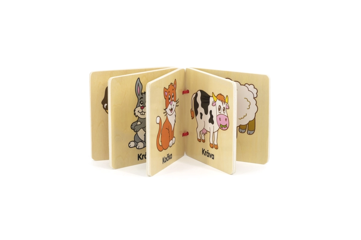 Questo libricino in legno a tema fattoria è un ottimo strumento per il primo approccio dei bambini al mondo degli animali. Le pagine resistenti in legno con illustrazioni vivide e didascalie in ceco aiutano a sviluppare la motricità fine, il vocabolario e la capacità di concentrazione.