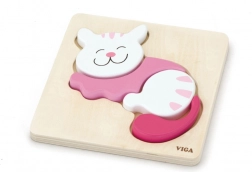 Mini Puzzle in Legno del rinomato marchio Viga per bambini sono una soluzione ideale sia per l'ambiente domestico che per le scuole dell'infanzia. Sono composti da 4 pezzi che insieme formano un'immagine di un gatto.